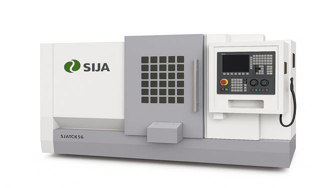 Tokarka SIJA TCK56 to wysoko wydajne urządzenie CNC typu slant-bed (ukośne łóżko), zaprojektowane z myślą o produkcji precyzyjnych detali na potrzeby przemysłu maszynowego, motoryzacyjnego, lotniczego czy innych branż wymagających dużej dokładności. Konstrukcja ukośna (kąt nachylenia) ułatwia odprowadzanie wiórów i minimalizuje ryzyko zapchania obszaru roboczego, co przekłada się na lepszą stabilność procesu i mniejszą awaryjność.